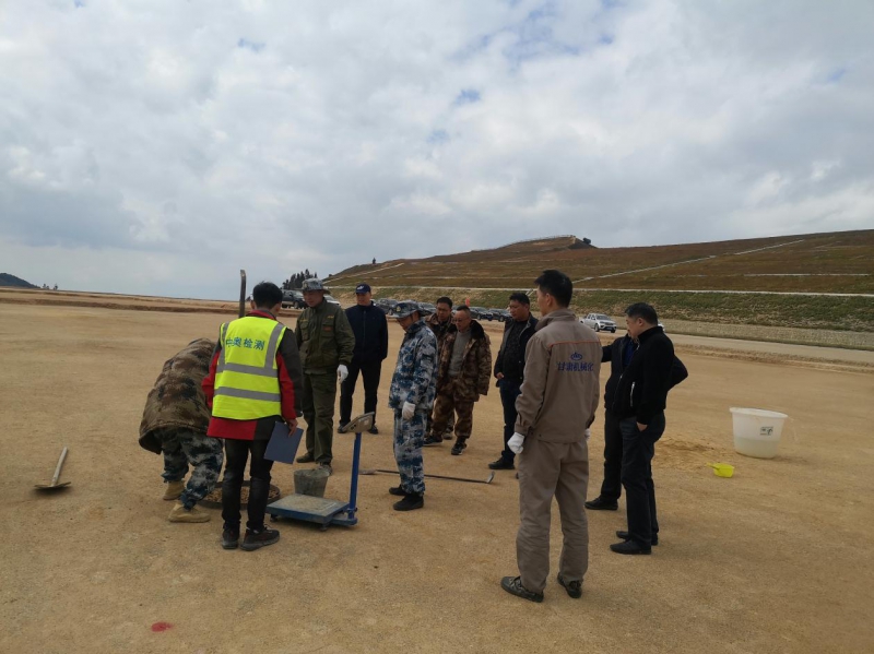 會議由云南機(jī)場集團(tuán)有限責(zé)任公司集團(tuán)建設(shè)指揮部總工辦主任張壽祿主持召開,民航西南質(zhì)監(jiān)站副站長田魯軍、高級工程師董青林、臨滄市民航發(fā)展管理局局長趙源慶出席會議,參會單位包括設(shè)計、勘察、造價咨詢、監(jiān)理、施工、檢測等單位。會上,鳳慶通用機(jī)場建設(shè)指揮部指揮長李正忠介紹了本次機(jī)場土石方、地基處理及排水工程驗收范圍及各標(biāo)段建設(shè)完成情況,認(rèn)真聽取了我參建單位工作匯報。 隨后,各專業(yè)驗收小組分別對現(xiàn)場及工程資料進(jìn)行檢查。