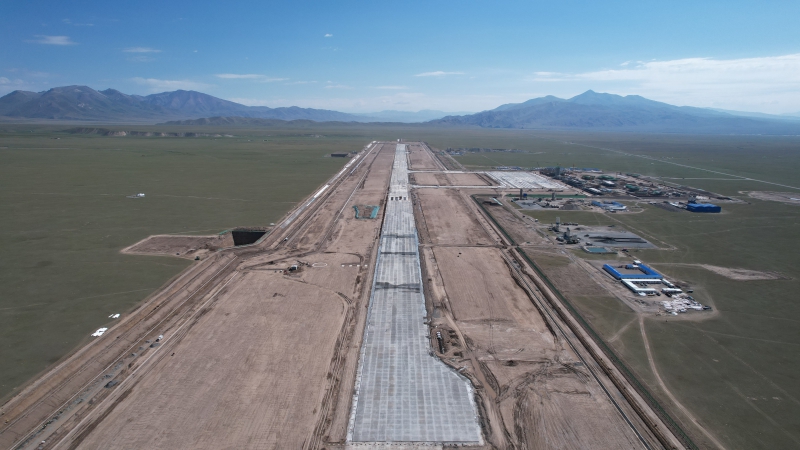 8月18日,隨著現(xiàn)場最后一車混凝土緩緩倒入倉內(nèi),我公司承建的新疆和靜巴音布魯克機(jī)場跑道全線貫通。